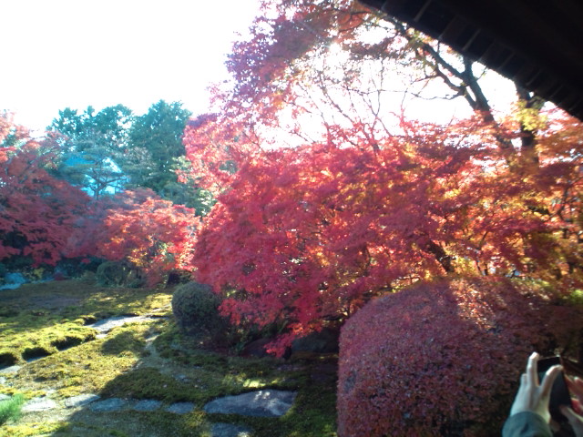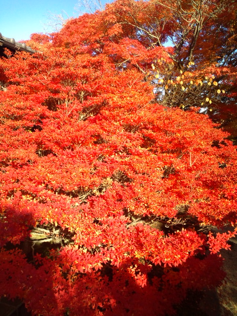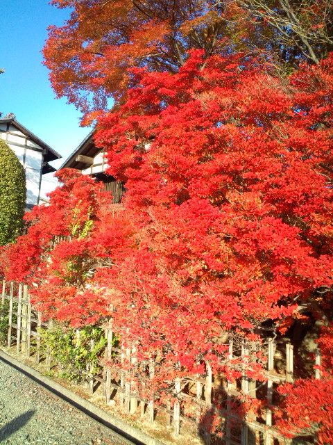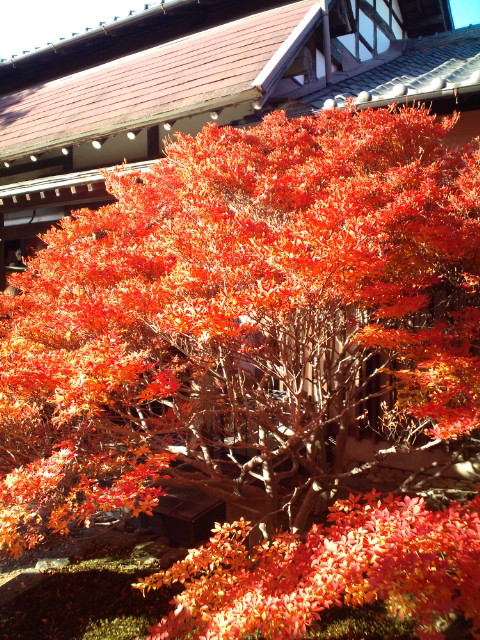 旧家が庭園になっていて、写真のとおりモミジのように真っ赤に紅葉していました。