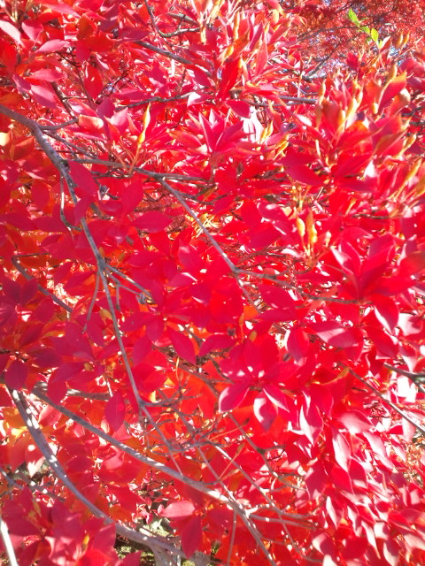 ドウダンツツジの紅葉を見るのは初めてでしたが、こんなに赤くなるんですね。