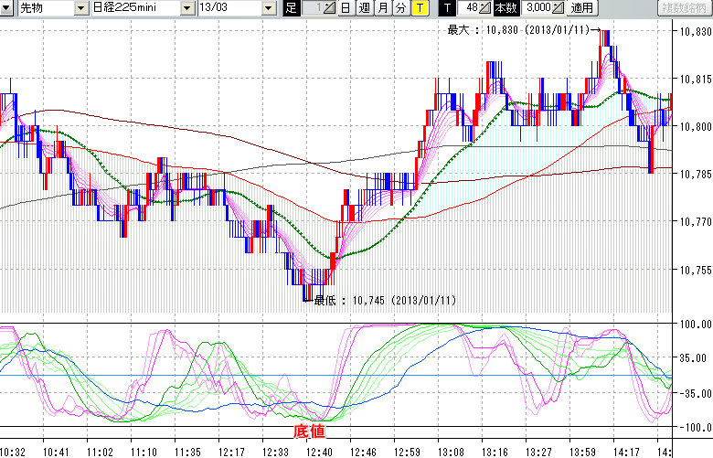 日経225mini先物チャート(下) : 48ティック足