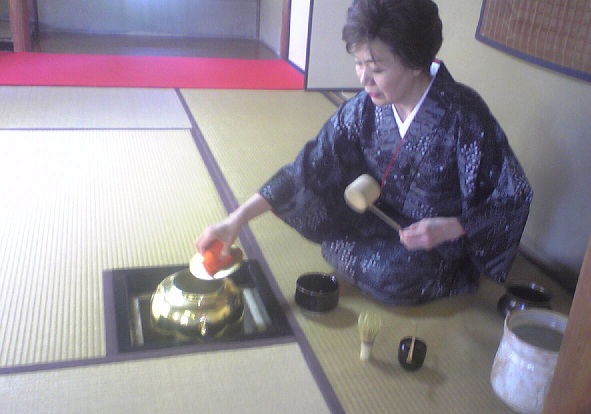 金の茶釜で沸かしたお湯で抹茶をいただいた。