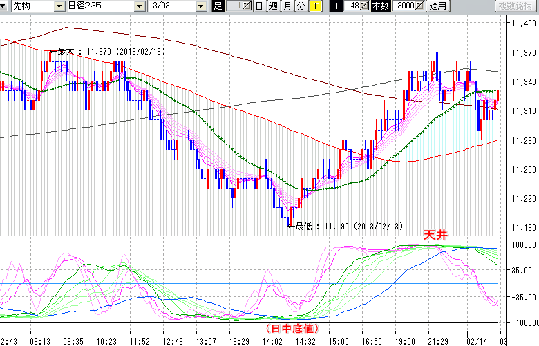★2/13 夜間の株価の天井★
