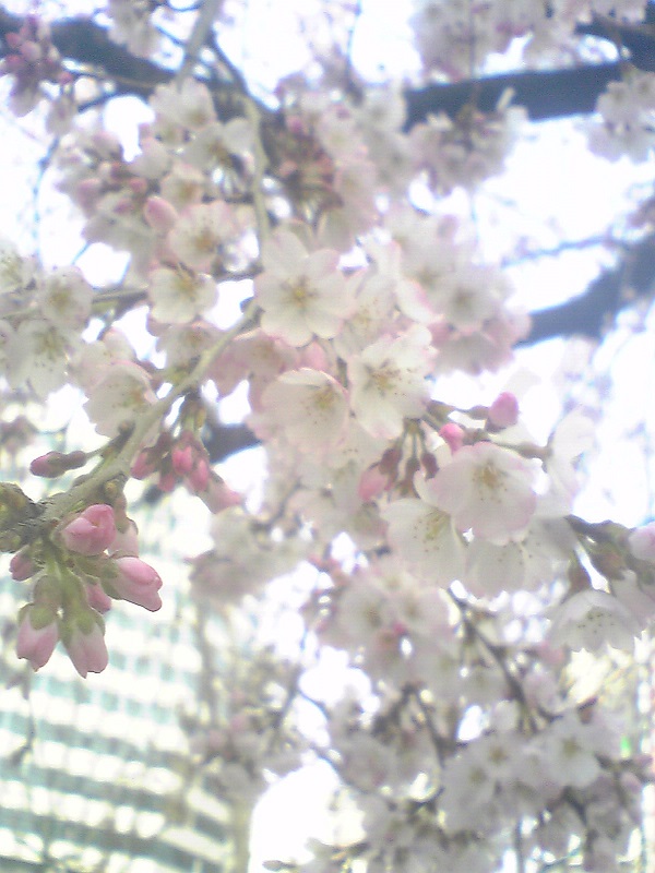 しだれざくらが咲いていた。目の前にダイワハウスがある。ビルで暖かいのだろう。