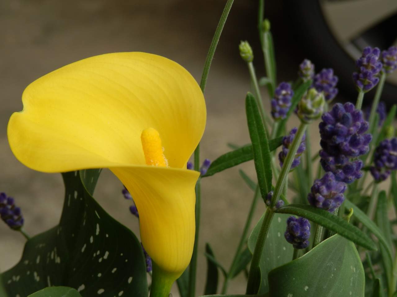 * ラベンダー(紫)とカラー(黄)が良く似合う