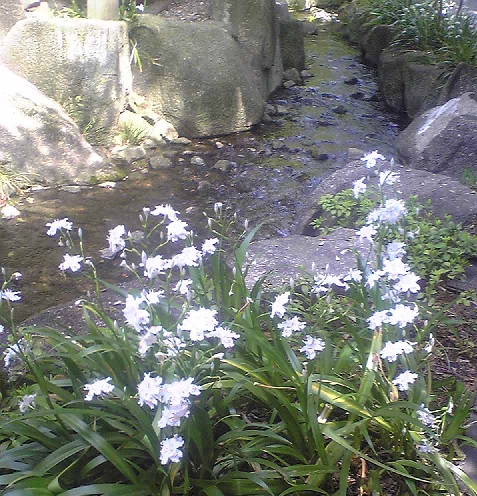 徳川美術館横の牡丹と徳川園の川