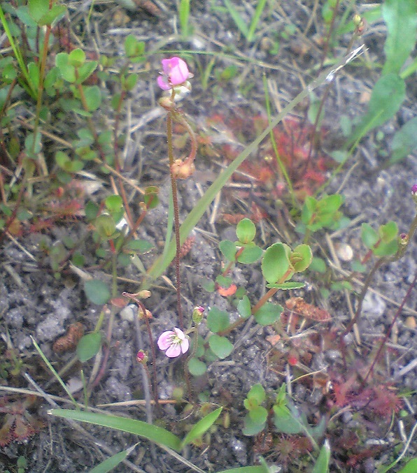 ピンクの小さい花がトウカイコモウセンゴケ、これは昔はどこにでもあったような花ですが、