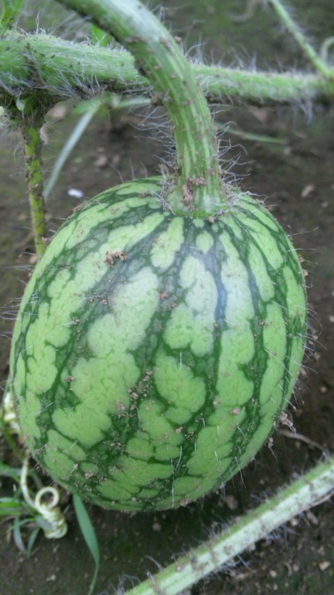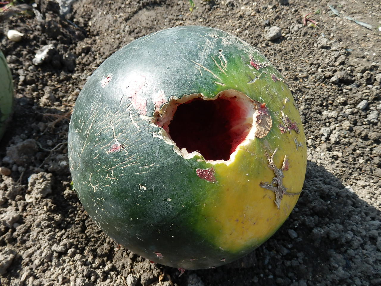*我が畑に泥棒がスイカが2個やられた、、、困ったラスカルノ仕業、、、