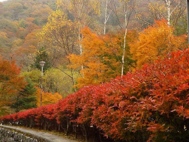山々の紅葉は頂上から麓に下りて来て 一段と美しさを増して来ました。