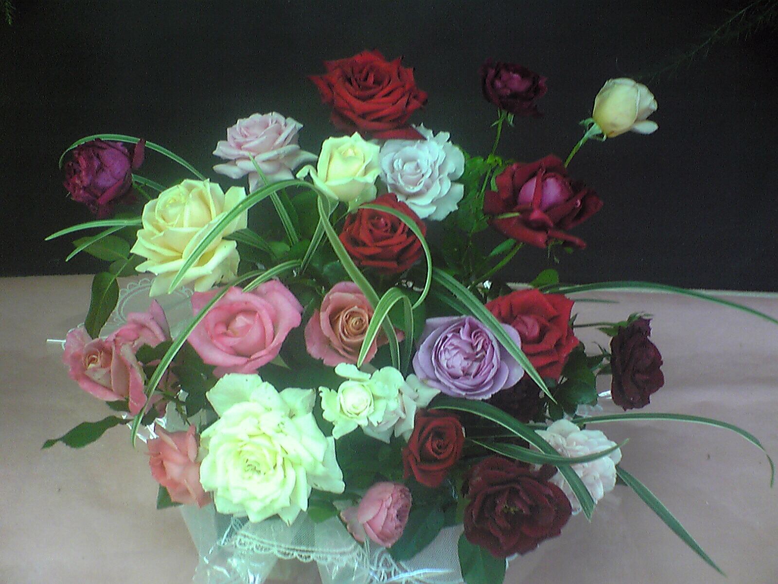 でも外では風が強く、バラのブーケを作っていた場所が飛んでしまった。