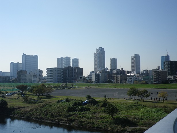 丸子橋(中原街道)から見た川崎側。マンションばっかり