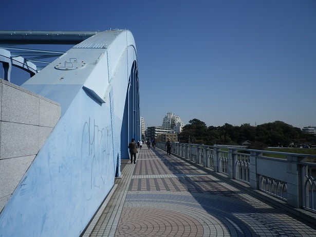 サイクリングロードだと信号がないし、堤防の上は眺めがいいので走っていてとてもいい気分。ジョギングしている人にはちょっと神経を使いますけど。