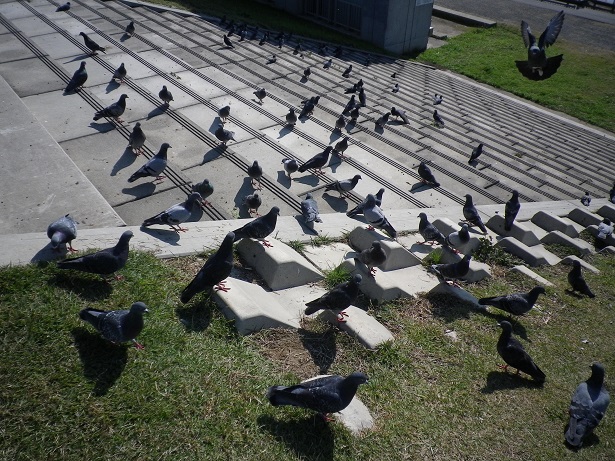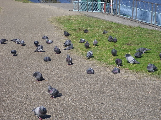 東京側でもハトが日なたぼっこ。好きなのかな?