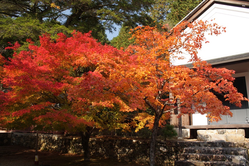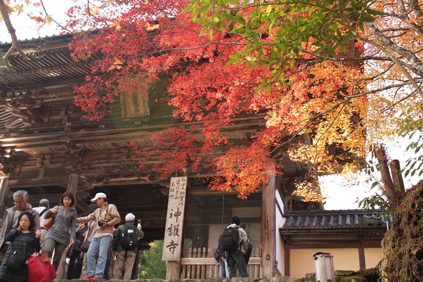 高雄神護寺山門の紅葉 茶店の紅葉 神護寺境内