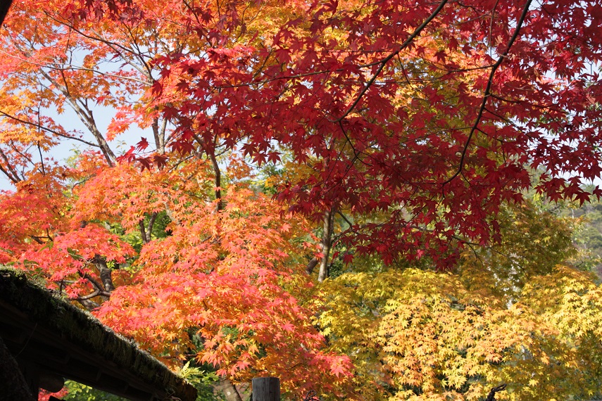 あだしの念仏寺(化野念仏寺)の入場口にある紅葉が絶品の美しさです。この色合いは写真では表現出来ないほどの美しさです。