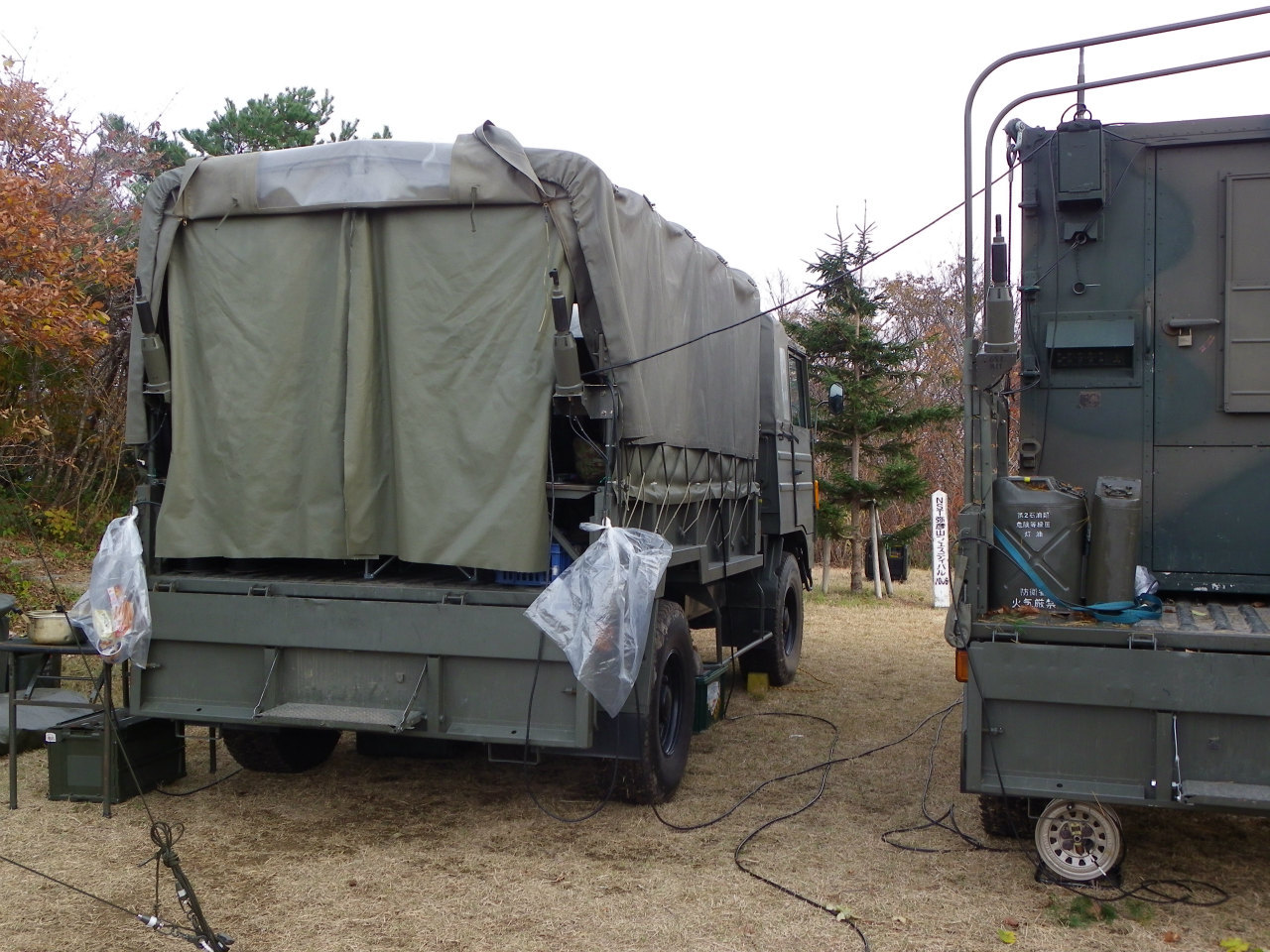 ところで一昨日、晴れていたので弥彦山と言うところの山頂へ行って、隣の多宝山ていう頂へ石段を登って行きましたら、なんと山頂に自衛隊のジープが2台w( ▼o▼ )w オオォォ!!
