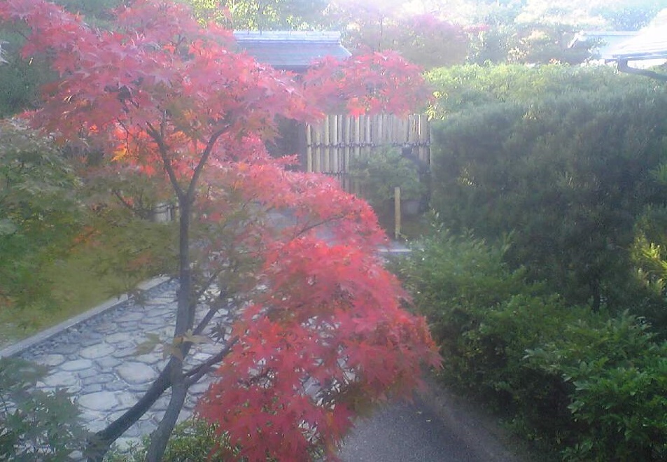 日本庭園に赤い紅葉が映えますね^^