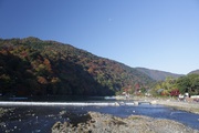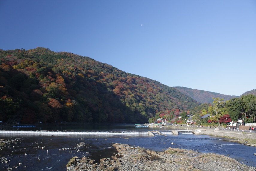 桂川と嵐山 大混雑する通り 渡月橋も人の波