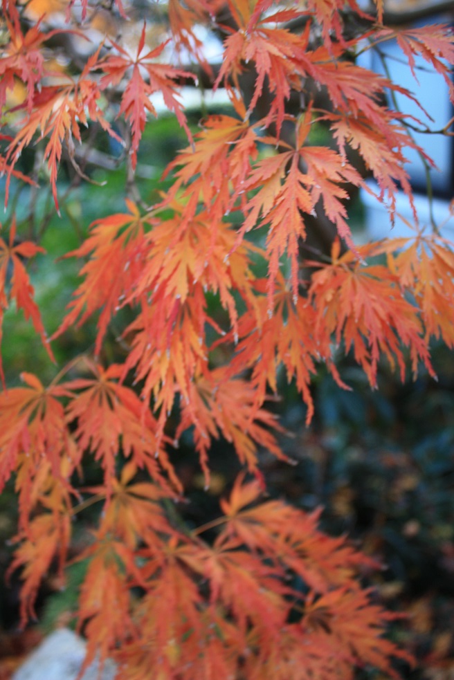 この古木の紅枝垂れモミジは樹齢数十年は経ってるんですよ。