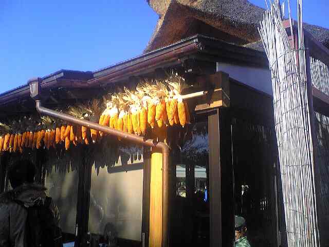 トウモロコシを吊るしている家は近所に何軒かありますよ。