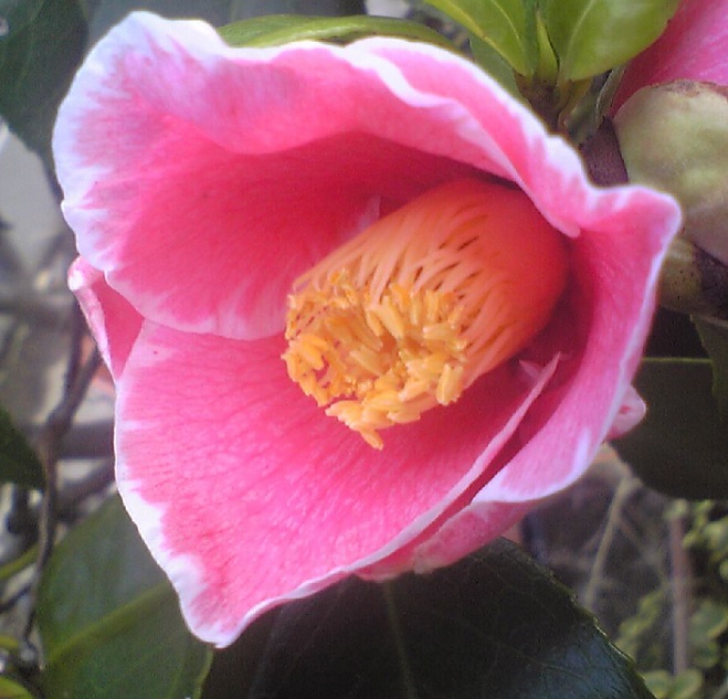三平椿が咲きました。今年は寒いので発色がいいです。