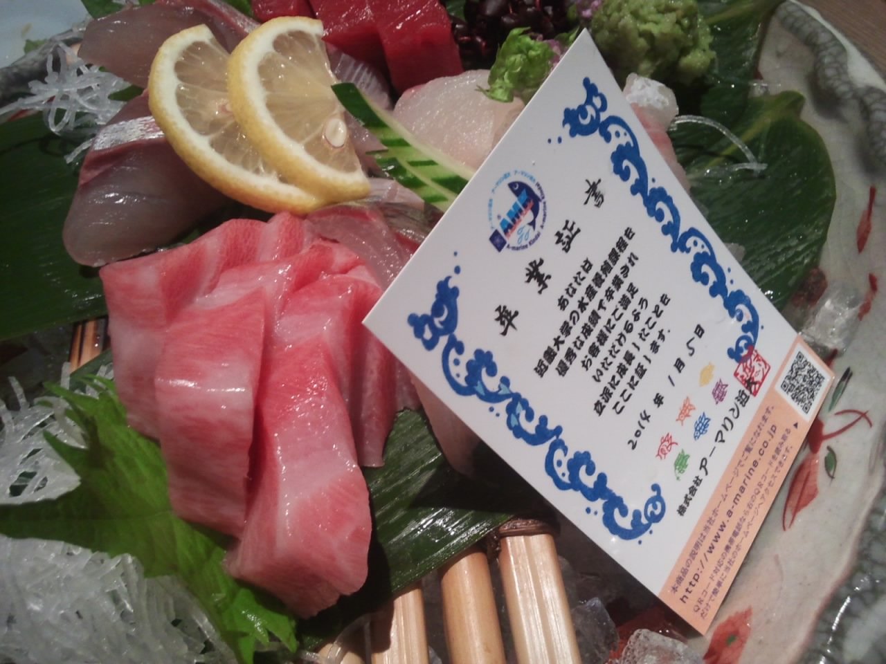 お店で頂いた 近畿大学卒業生のマグロ