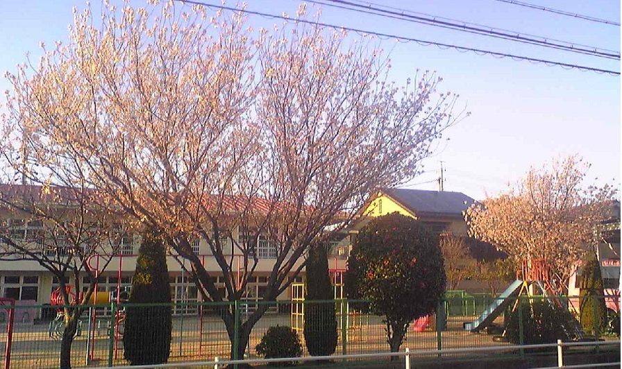 東海桜は満開、彼岸桜はこれから。右は東海桜、まっすぐのびてる枝が特徴。