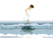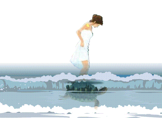 亀に乗って、海に戻ります。