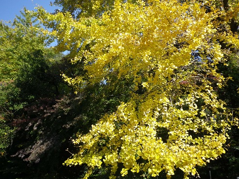 もう黄色くなっている銀杏もありますね。↓