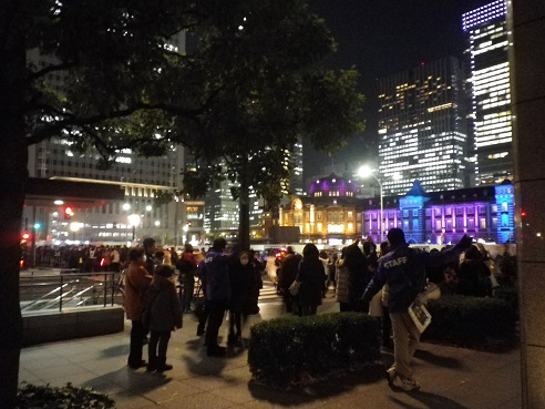 今日はクリスマスイブで、おまけに東京駅100年記念で駅舎のライトアップもあり、丸の内は大変なにぎわいでした。アタシもヤジ馬半分でのぞいてきたので、少しばかり写真をアップしてみます。