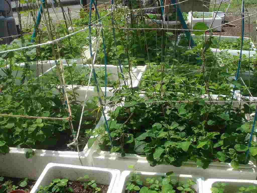 畑に植えたものも蕾を沢山つけました。畑は今年猛暑