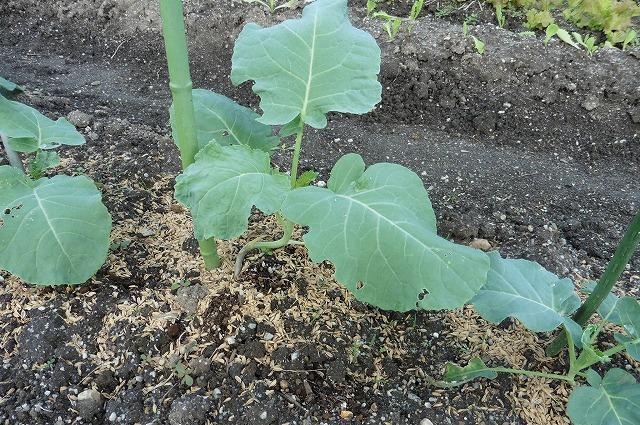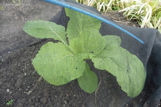 13日に植えた白菜(虫除けのため寒冷紗がかけてあります)、ブロッコリー