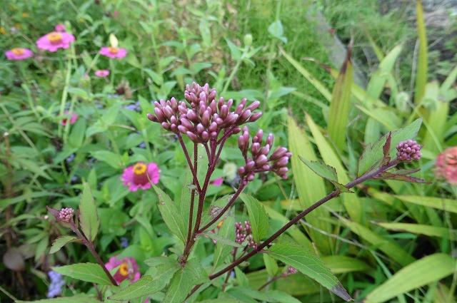 フジバカマのつぼみ。秋の七草ですが、まだ咲くまでには少し日がかかりそう。