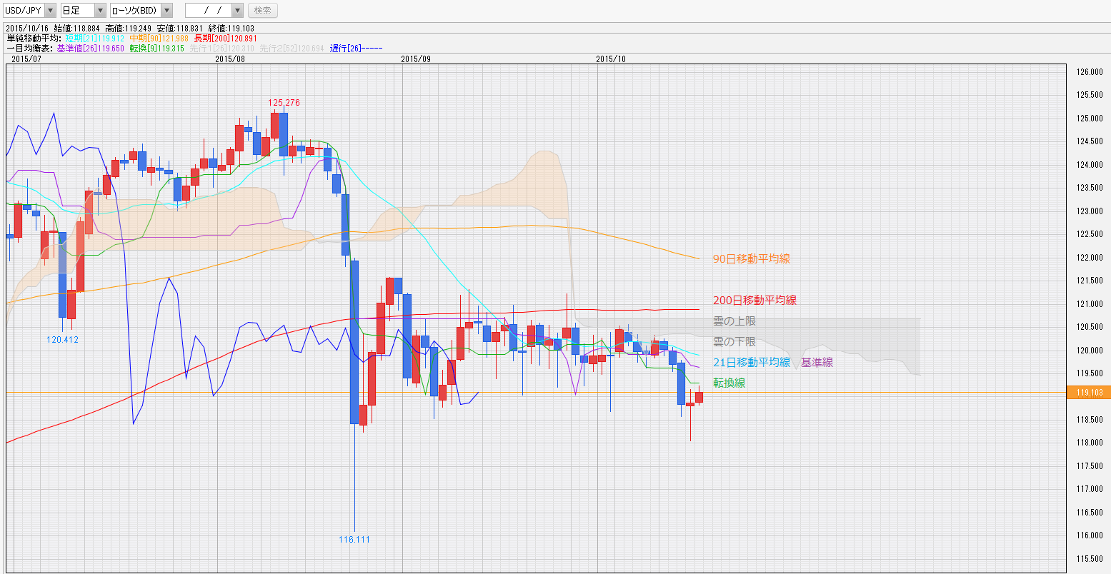 ・119円64銭(一目均衡表・基準線)