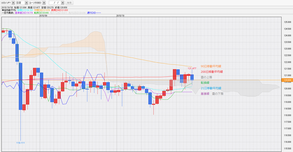 119円30銭の一目均衡表・週足雲上限が