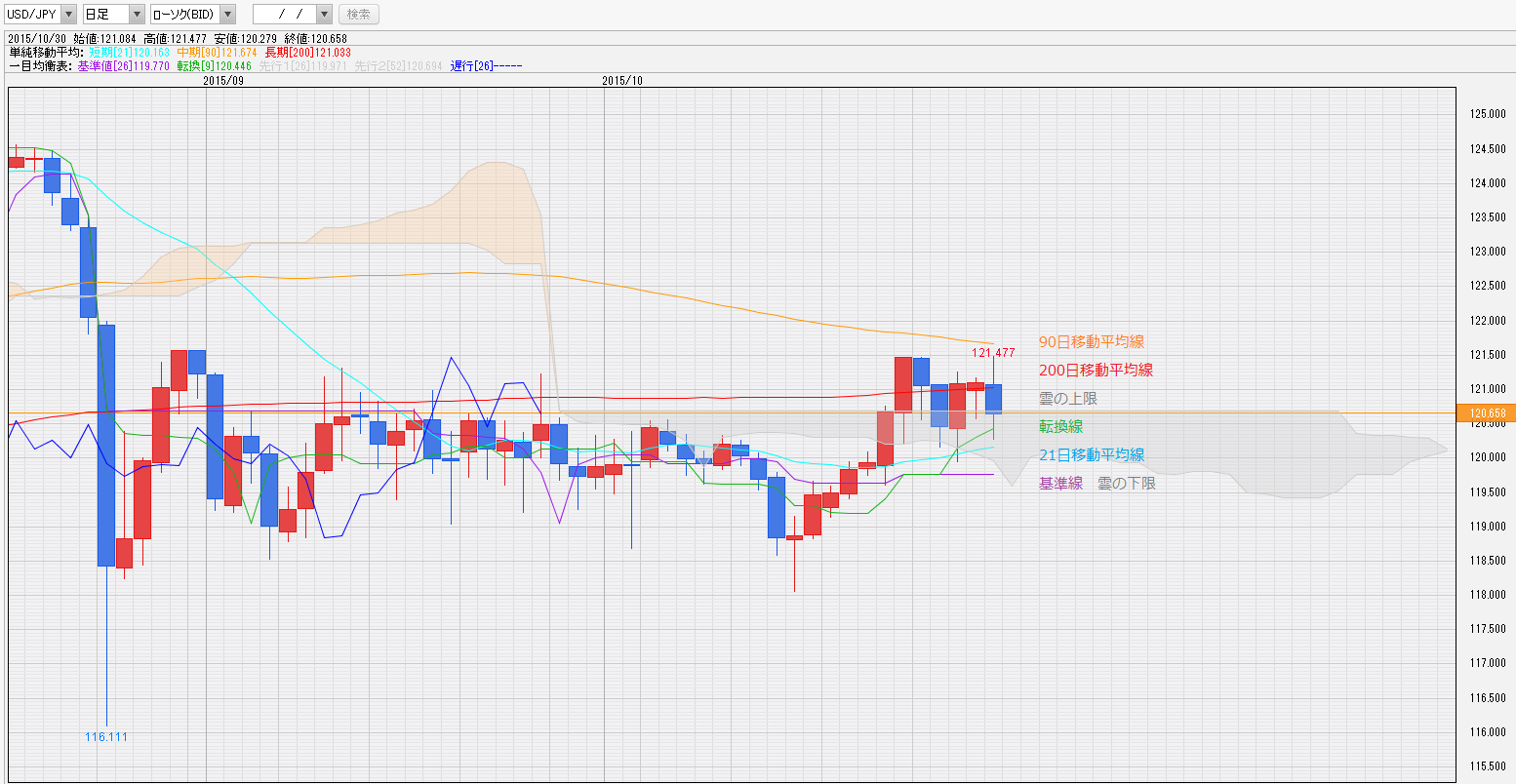 ドル円は、ローソク足の上下に