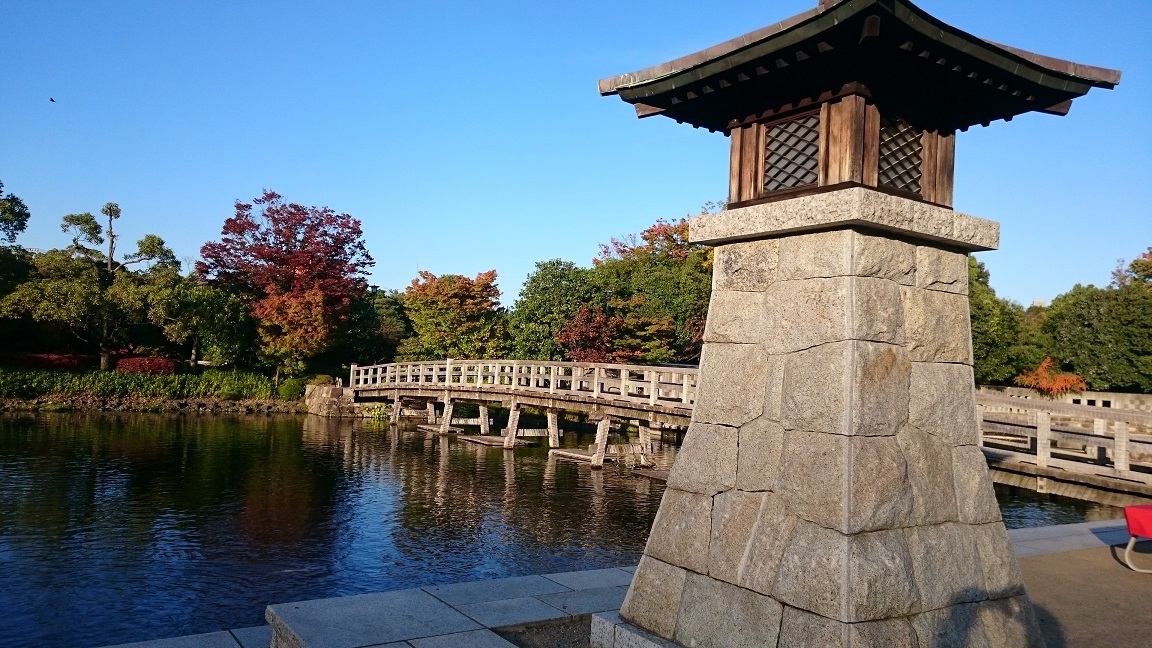 めっきり寒くなって、紅葉も始まり、風が強い場所にある、ここ白鳥庭園は紅葉が早い。