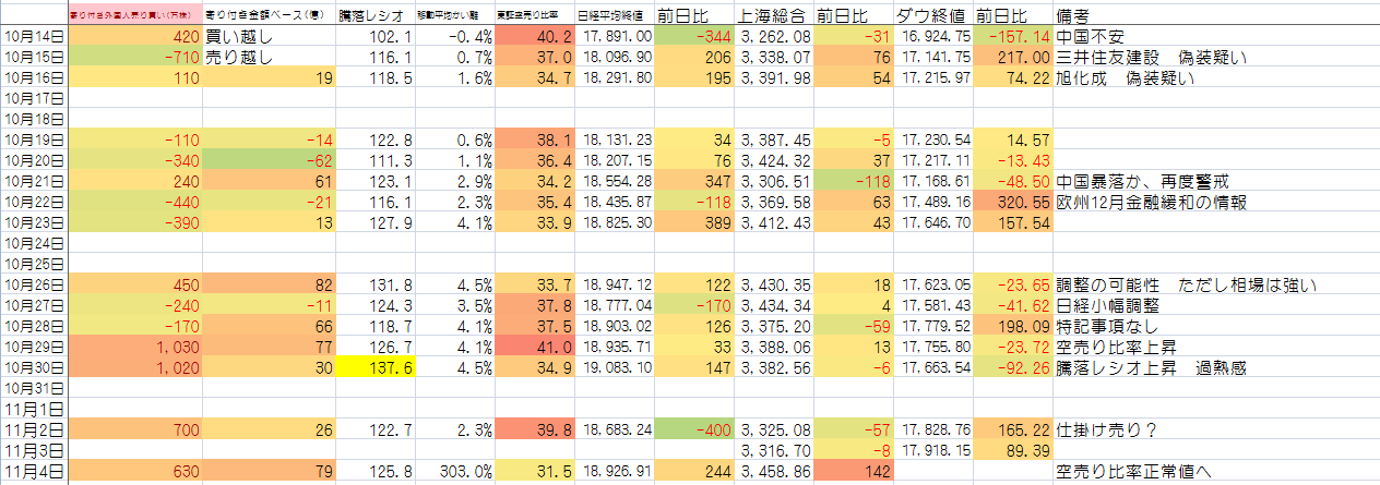 空売り比率が31.5。ようやく正常値に戻ってきた。