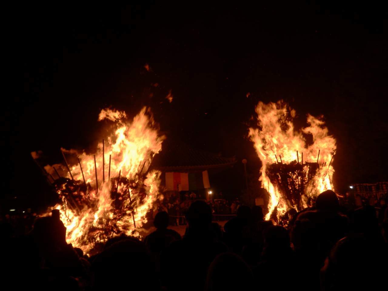 写真は昨日夜・・・茅原の大とんどと今日の初日の出