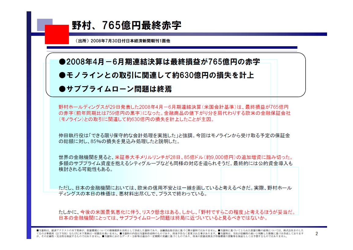 ●モノラインとの取引に関連して約630億円の損失を計上