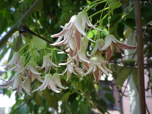 ↑ムベの花です。アケビの同類。昨秋には実が成りました。九州あたりじゃ「ンベ」というそうな