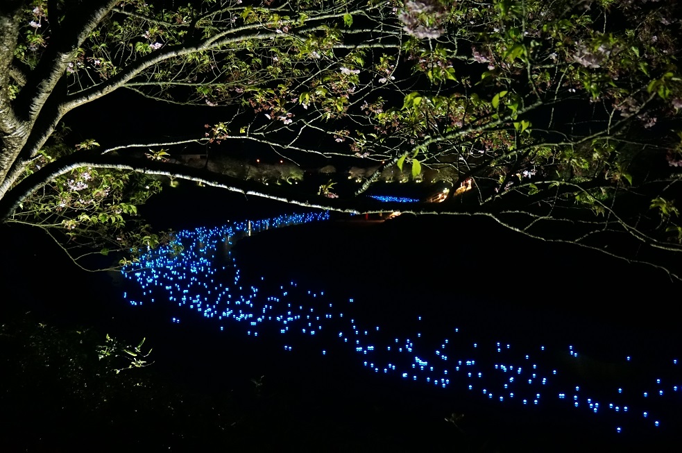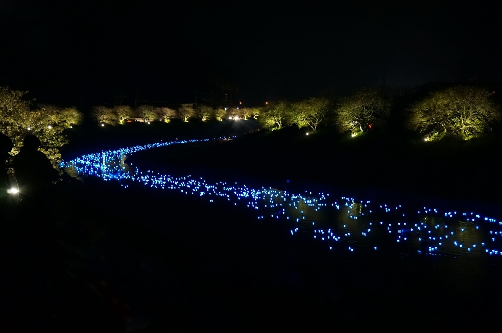 はい。写真の桜と光の写真は星空プロジェクト?とか言うので全国展開しているようです。多分呆亭どのの見られたというのも同じプロジェクトの一か所だと思います。ひかりのLEDはボール状のものを川に流して下流で拾い集め上流でまた流していました。幻想的で良かったですがさくらがだいぶ散ってしまってとても残念でした。