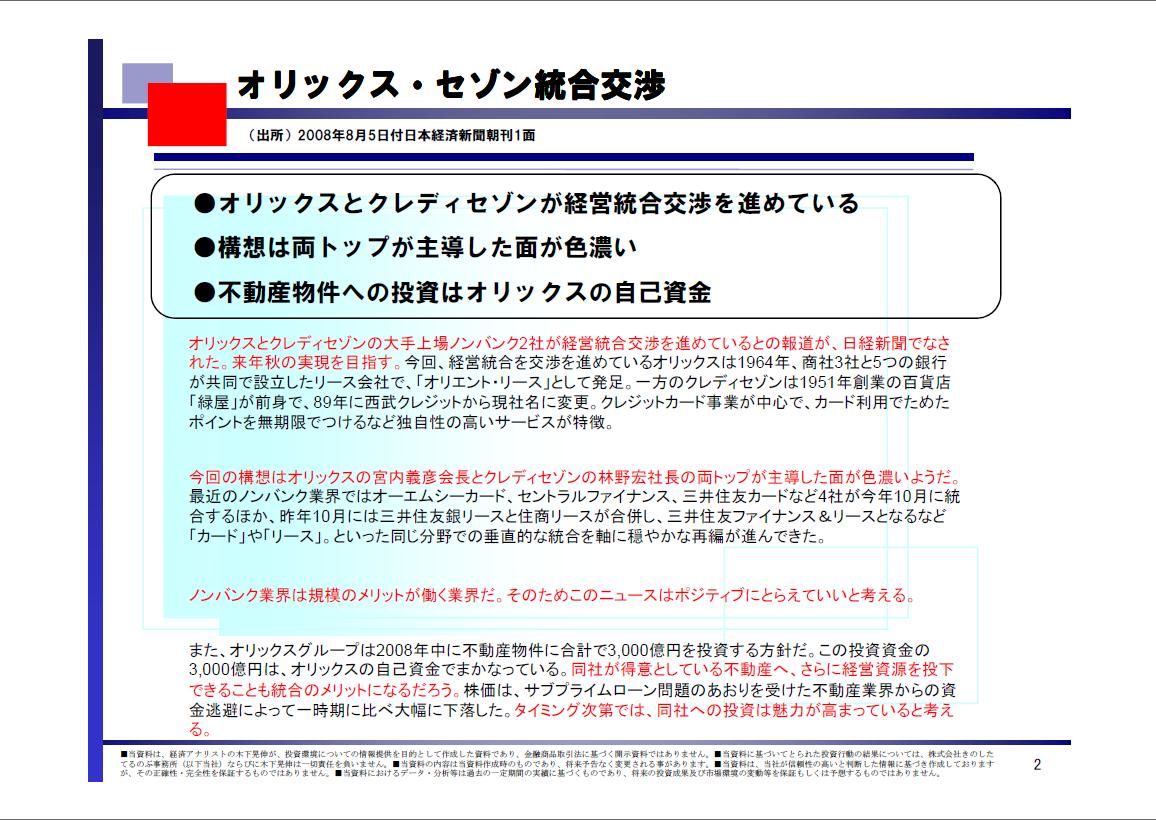 ●オリックスとクレディセゾンが経営統合交渉を進めている