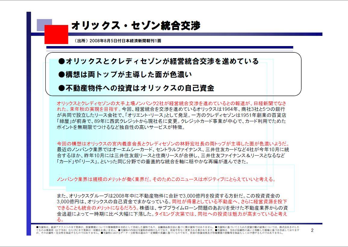 「カード」や「リース」といった同じ分野での垂直的な統合を軸に