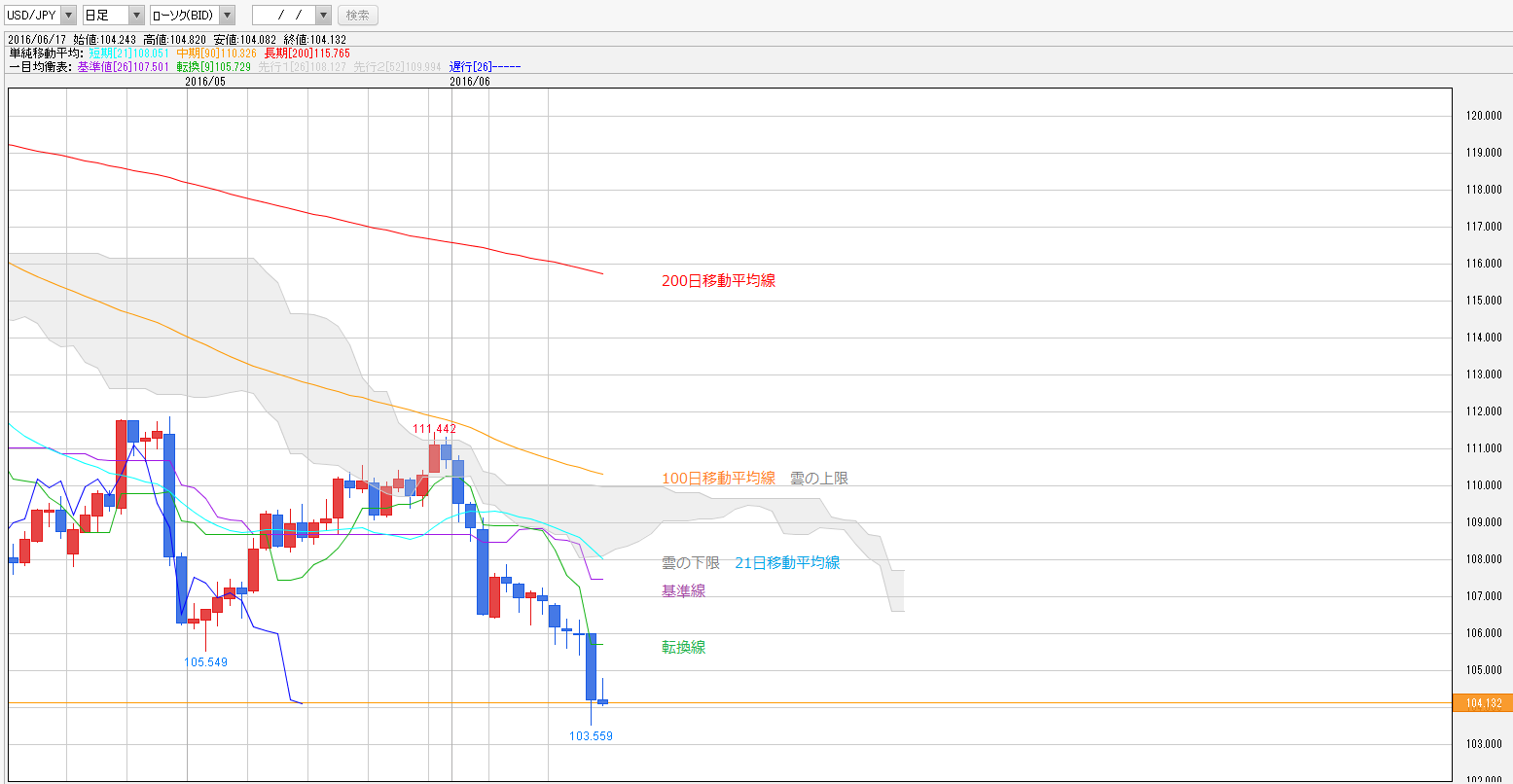 6/17安値(104円03銭)、6/16安値(103円53銭)