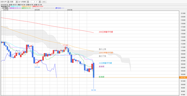 月足一目均衡表・雲の上限(96円12銭)が意識されている。