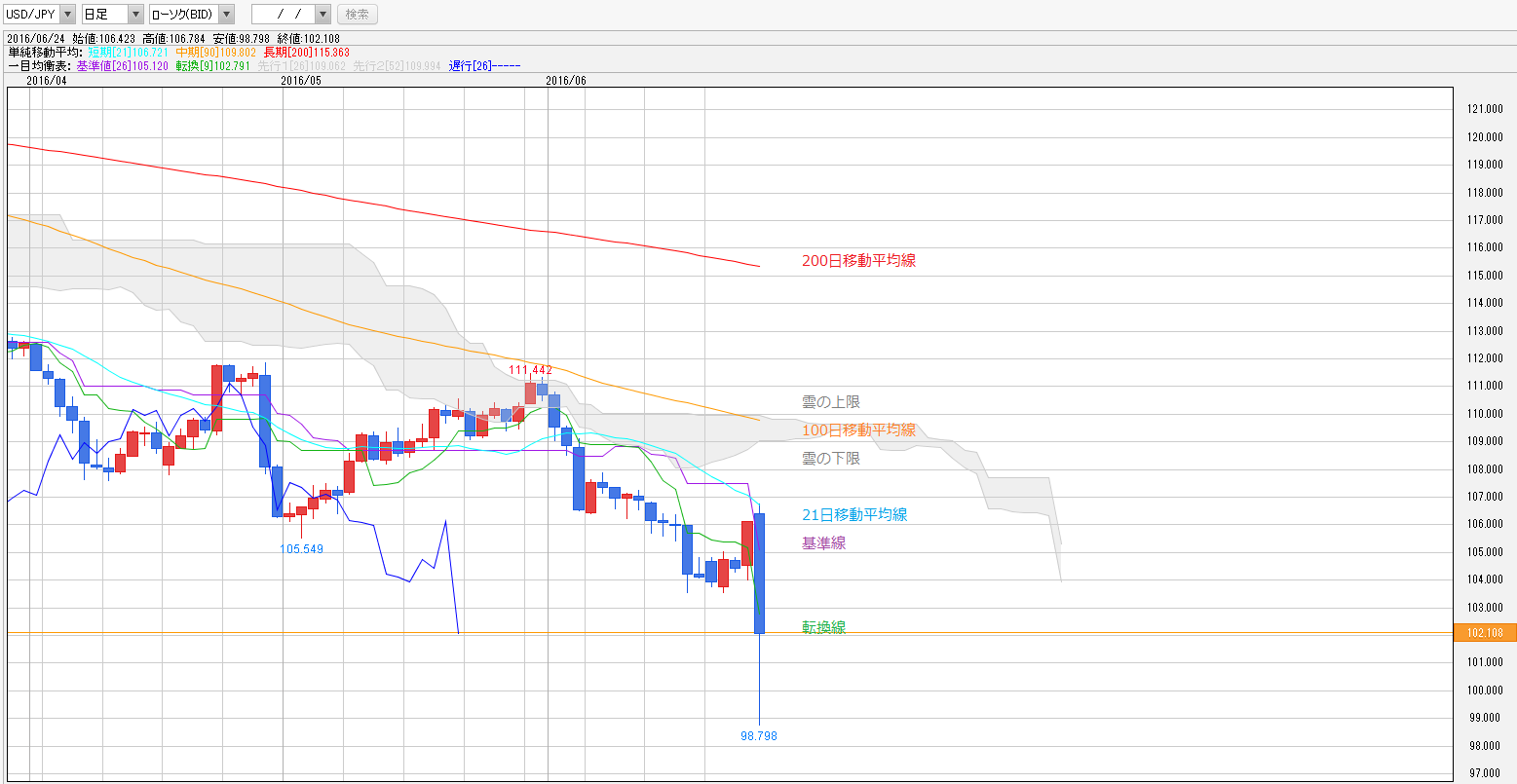 (★ドル円・一目均衡表チャート→ 外為どっとコム 提供)