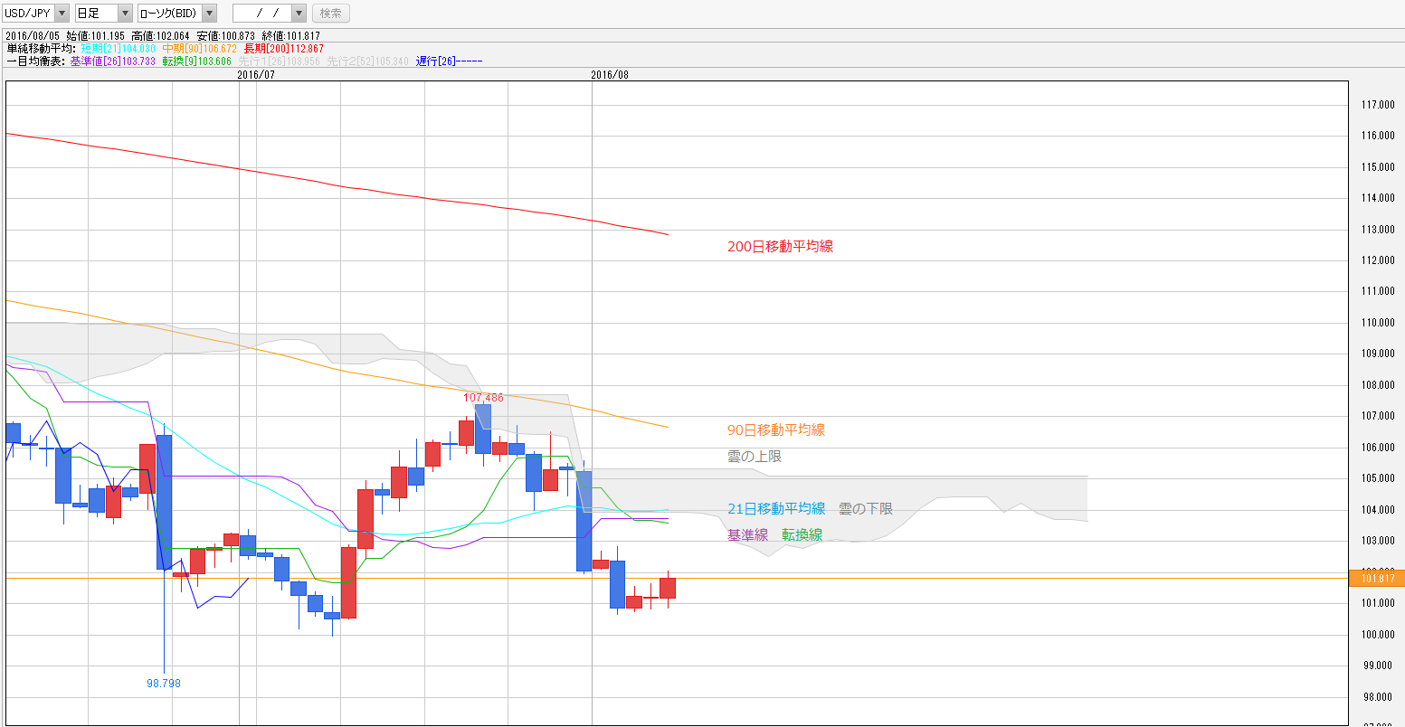 <ドル円・一目均衡表チャート>