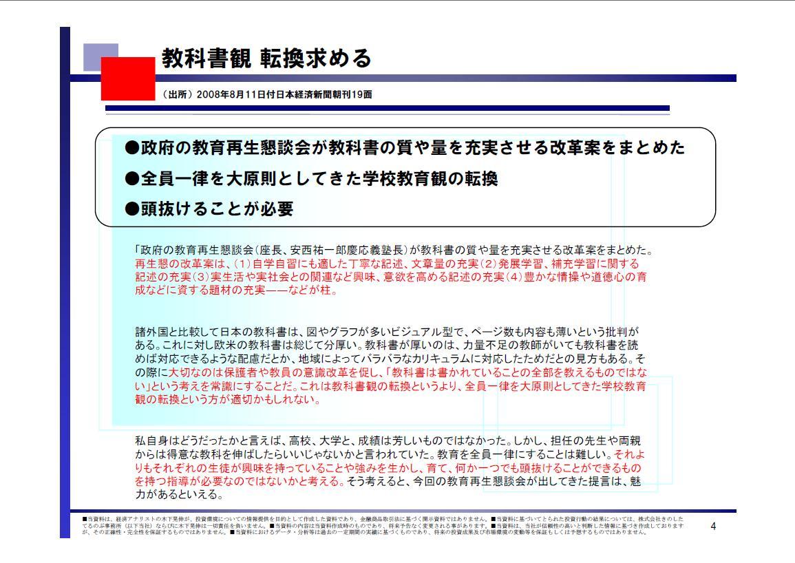 ●政府の教育再生懇談会が教科書の質や量を充実させる改革案をまとめた