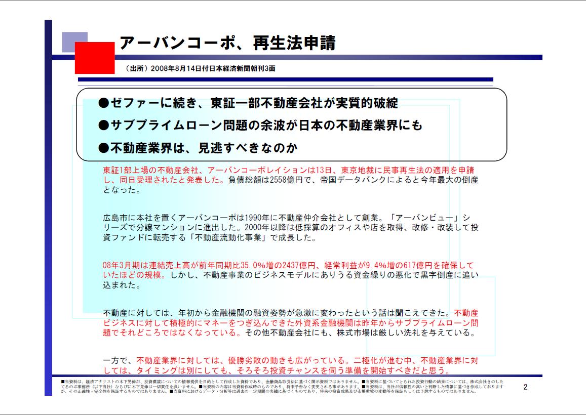 ●サブプライムローン問題の余波が日本の不動産業界にも