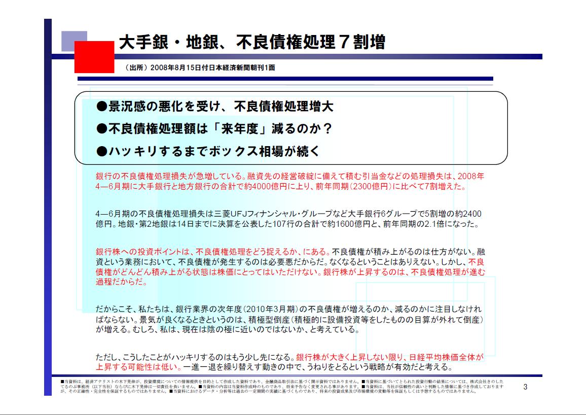 銀行株への投資ポイントは、不良債権処理をどう捉えるか、にある。