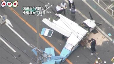 19日午前、大阪・八尾市の国道に小型飛行機が墜落し乗っていた2人がけがをしました。